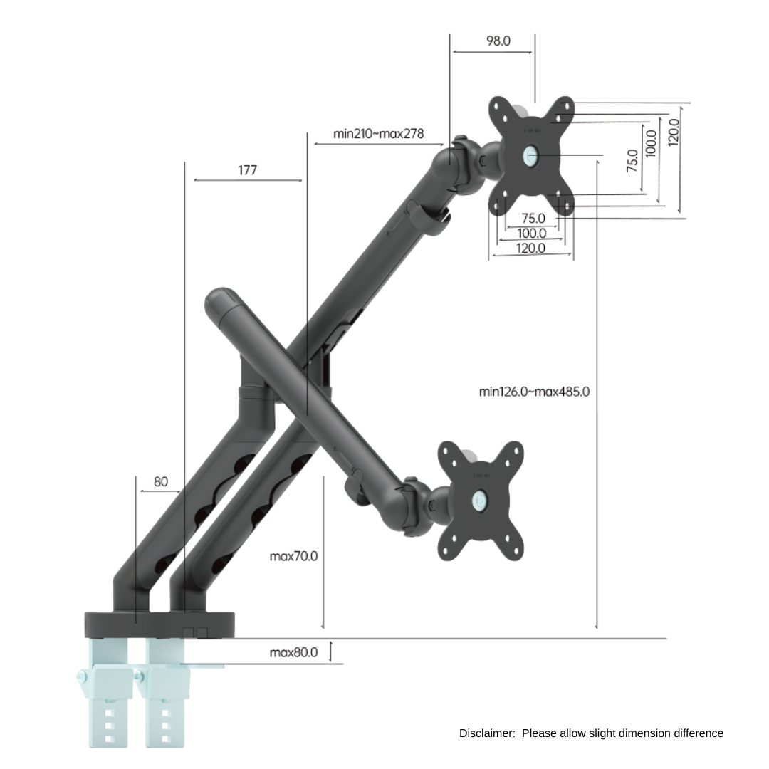 Each arm holds up to 10 kg, providing secure and stable support for a wide range of monitors—ideal for professional and multi-screen setups.
